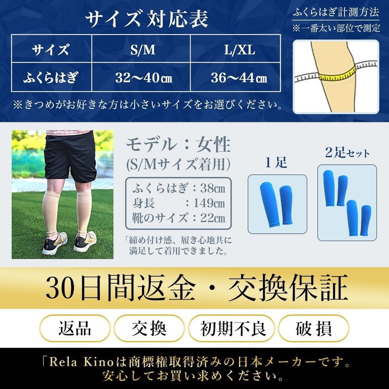 - 【サイズ】(S/M)ふくらはぎ32-40cm (L/XL)ふくらはぎ36-44cm 【商品サイズ(実寸)】(S/M)長さ約25cm (L/XL)長さ約29cm