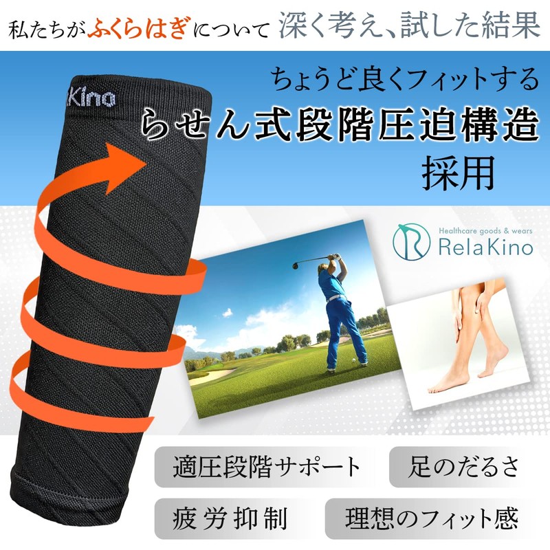 Rela Kino ふくらはぎ サポーター [理学療法士監修] 足 ふくらはぎ用 膨脛 着圧 カーフスリーブ スポーツ 立ち仕事 男性 女性用 (ブラック2足セット, L/XL)