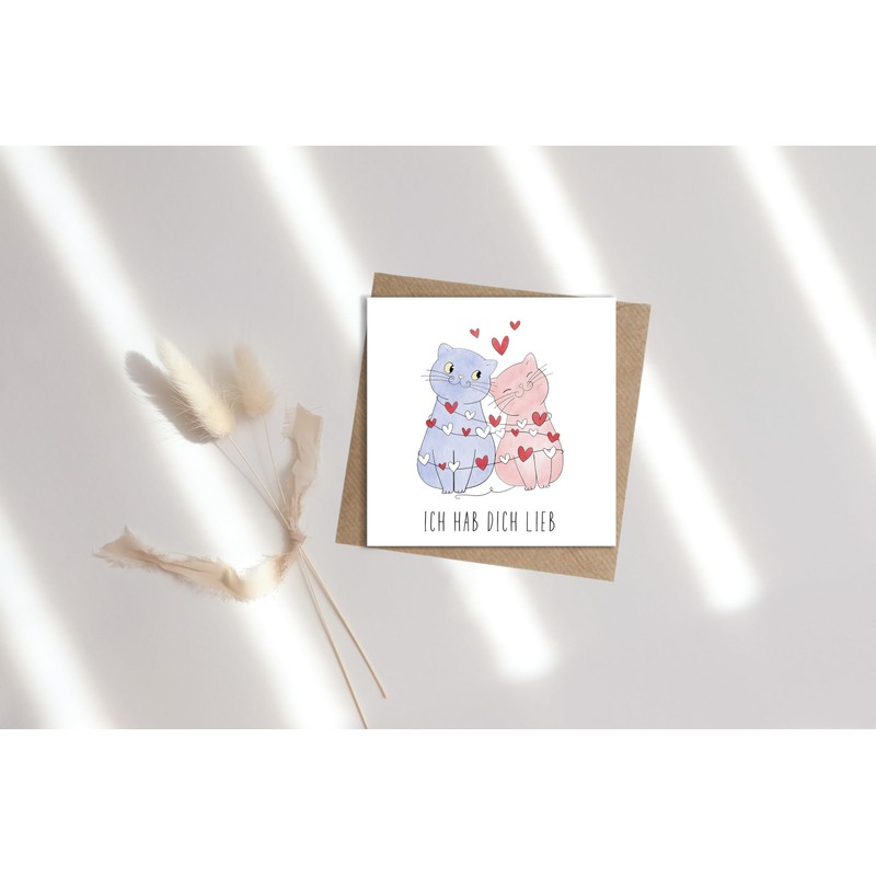 Relationship Card Friendship – Folding Card with Envelope for Partner and Friends – Ich Hab Dich Lieb mit Katzen Couple (125 x 125 mm)