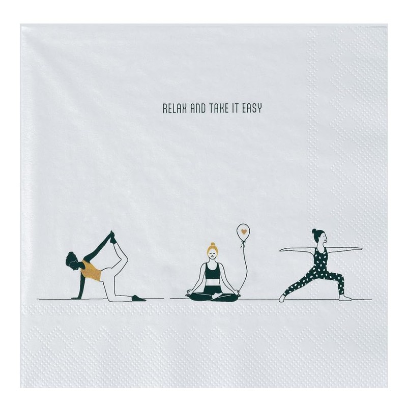Lunch Napkins Relax and enjoy your meals with our stylish lunch napkin "Relax and take it easy". This high-quality napkin is not only functional, but also an expression to the yoga lifestyle. The appealing design with inspirational motifs reminds you to take time for yourself and enjoy the moment. The "Relax and take it easy" napkin is not only a practical accessory for your meals, but also a small reminder that brings serenity and relaxation to everyday life. Combine your love of yoga with a stylish dining table and create a harmonious atmosphere that invites you to linger. Treat yourself and your guests to the best - with the lunch napkin "Relax and take it easy" every meal becomes a special experience!