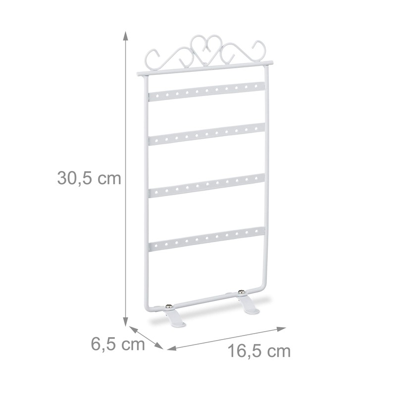 Relaxdays Earring Holder, Jewellery Stand for Stud Earrings & Long Earrings, Earring Stand, Iron, 30.5 x 16.5 x 6.5 cm, White, 1 Piece