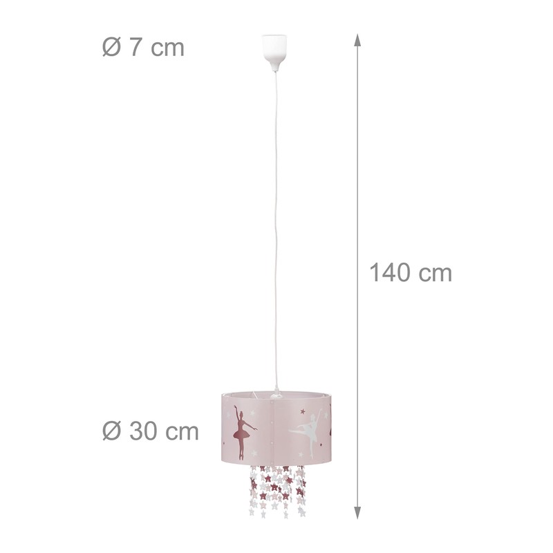 Relaxdays Hängelampe für Mädchen, Kinderlampe m. Ballerina Motiv, Pendelleuchte m. Stern-Mobile f. Kinderzimmer, rosa, 30 x 30 x 140 cm
