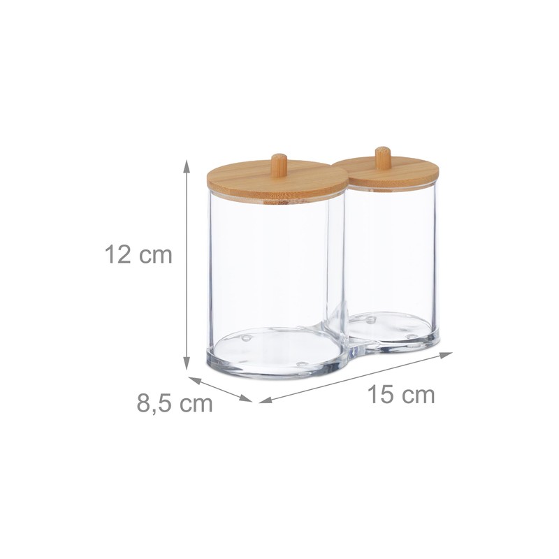 Relaxdays Plastic Container with Bamboo Lid, Organiser Cotton Pads and Cotton Swabs - Clear/Natural