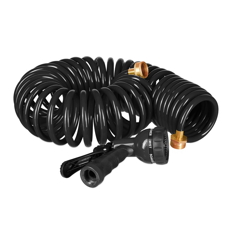 Relaxdays Relaxdays Spiralschlauch Wasser, bis 10 m ausziehbar, flexibler Gartenschlauch mit Wasserbrause, 7 Strahlarten, schwarz