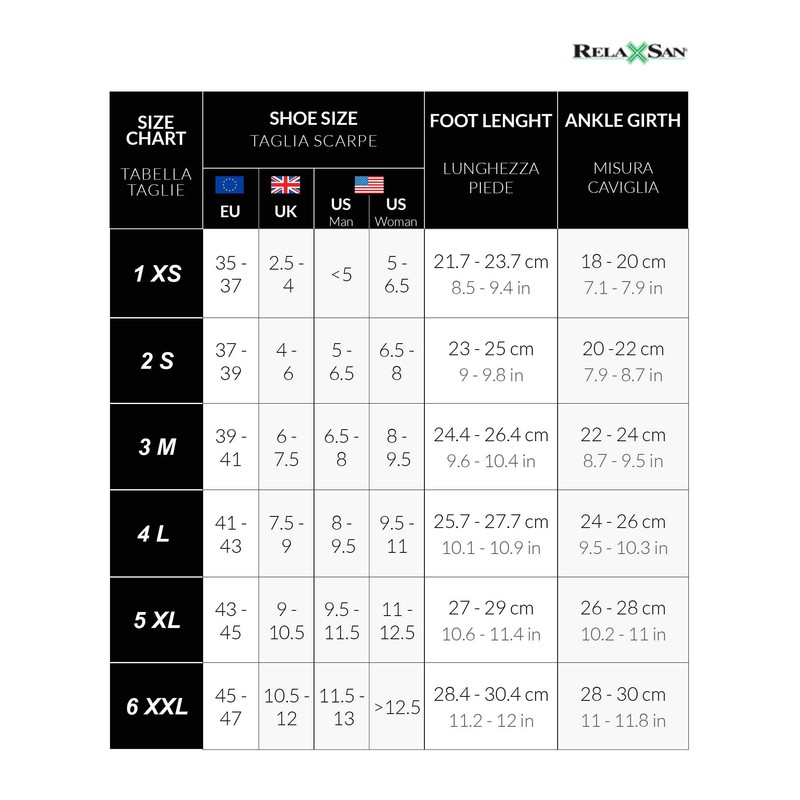 Size 1-XS: EU: 35-37 - ankle circumference: cm 18-20.