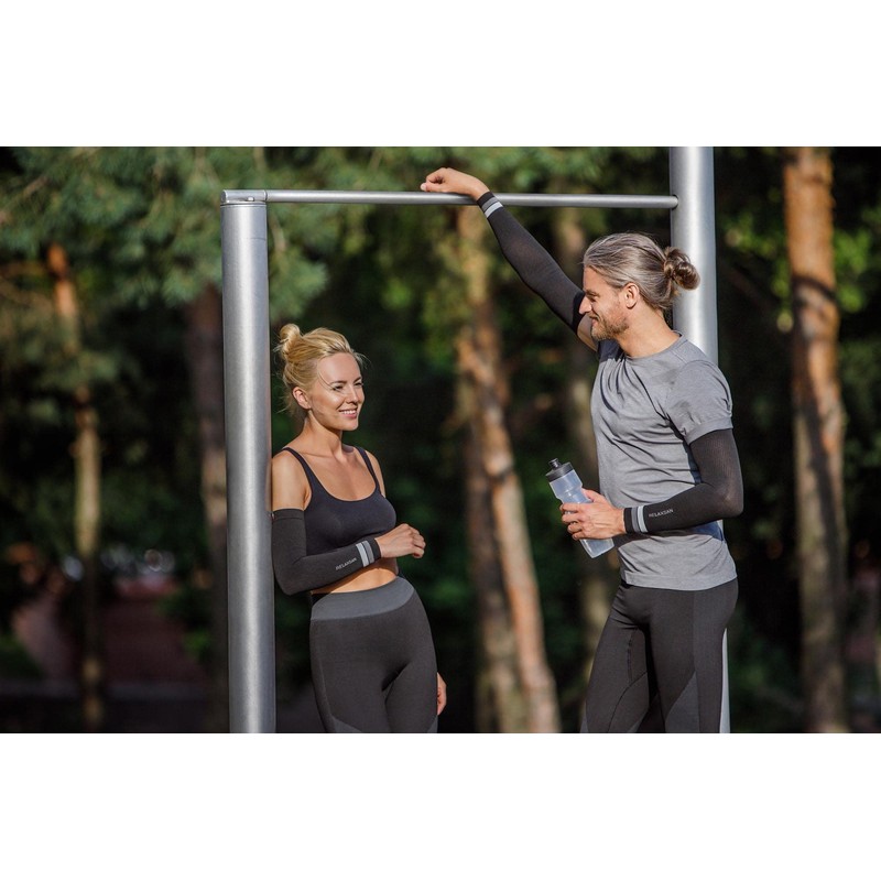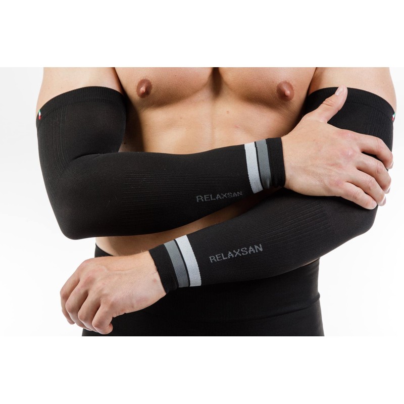 Relaxsan Sport 802 (Black/Grey, M) Sport Compression Arm Sleeves Unisex Men Women
