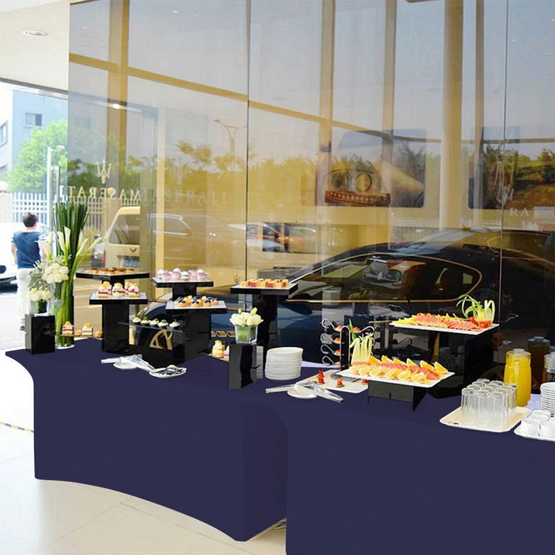 RELIANCER 2 Pack 4FT Rectangular Spandex Table Cover Four-Way Tight Fitted Stretch Tablecloth Table Cloth for Outdoor Party DJ Tradeshow Banquet Vendor Wedding Celebration (2PC 4FT, Navy Blue)