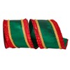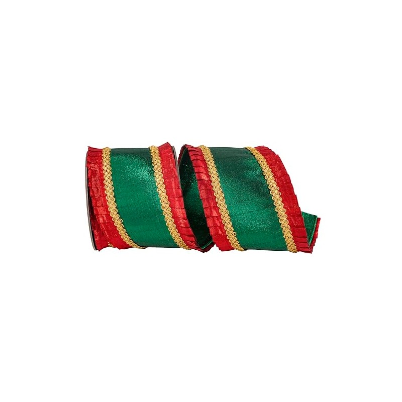Reliant Ribbon Metallic Pleated Overlay Deluxe Metallic Dupioni Backed Wired Edge, Green/red, 4 Inch, 5 Yards