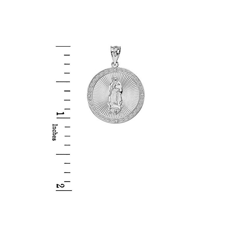 Religious Jewelry 925 Sterling Silver Our Lady Of Guadalupe Miraculous Round Medal CZ Pendant (Large)