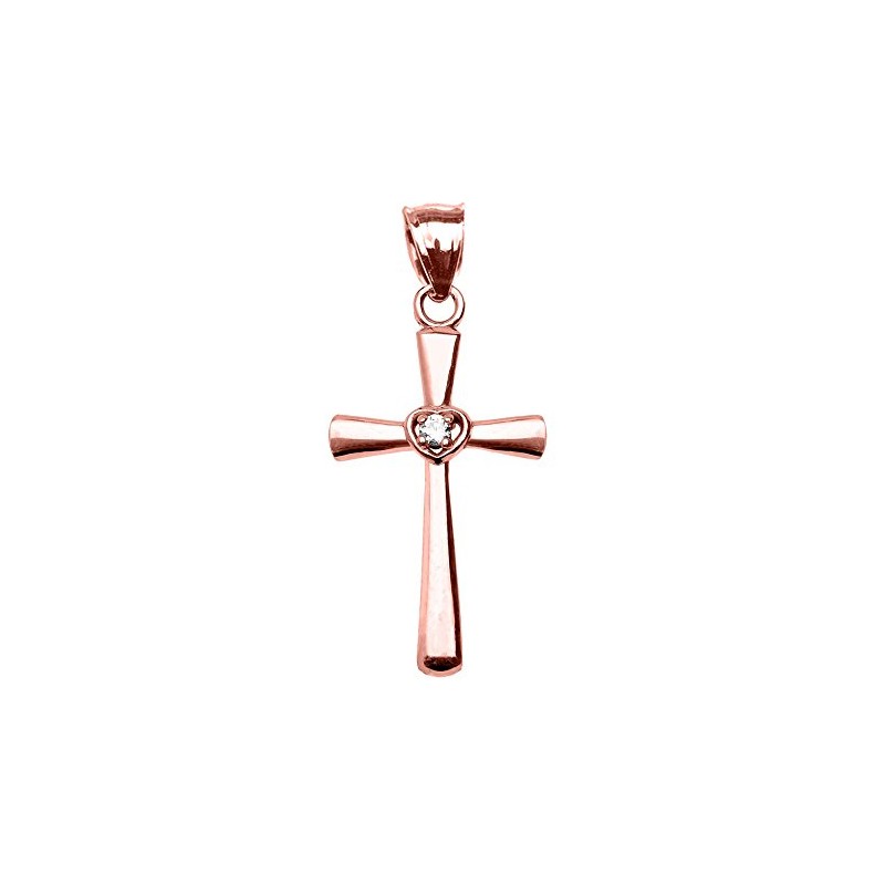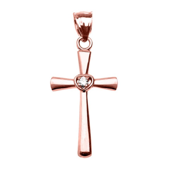 Religious Jewelry Solitaire Cubic Zirconia Heart Cross Pendant in 10k Rose Gold
