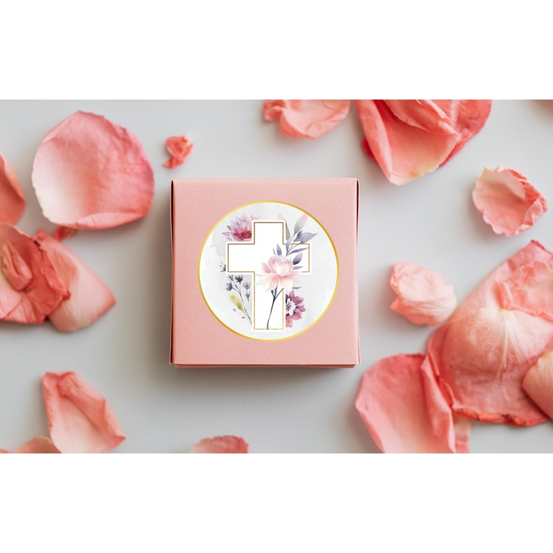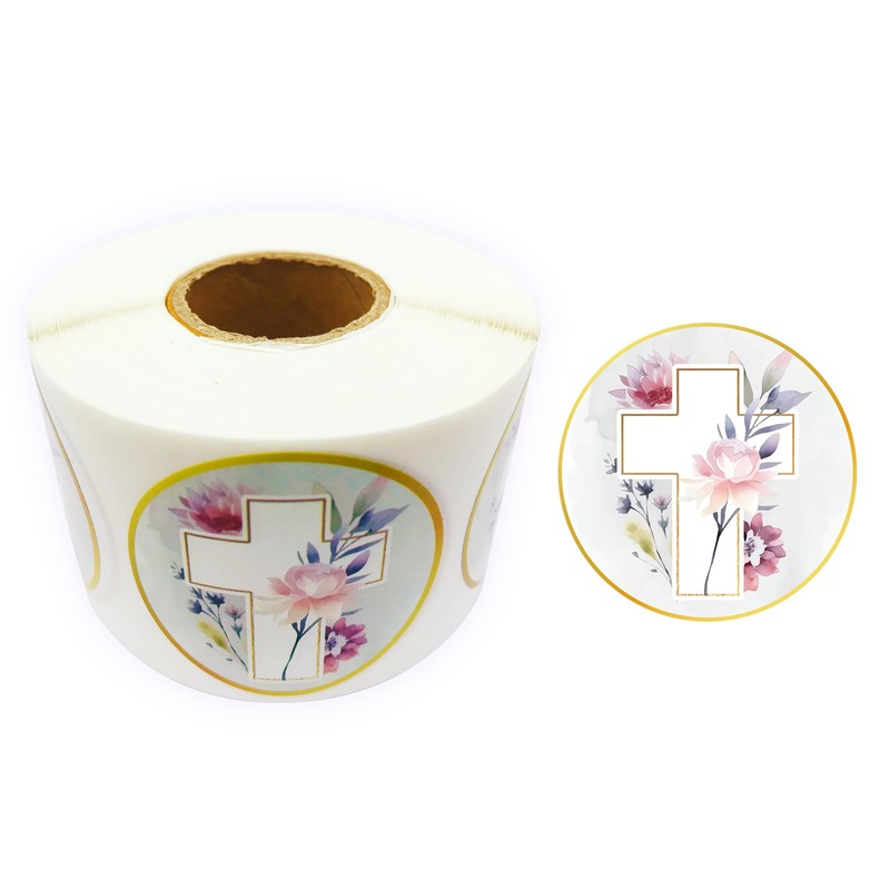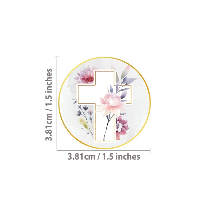 Religious Stickers – 500 PCS Floral Cross Stickers, Christian Cross Design Round Labels, Envelope Seals, Party Favors, 1.5 Inches in Diameter