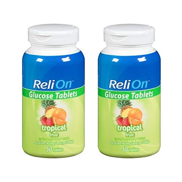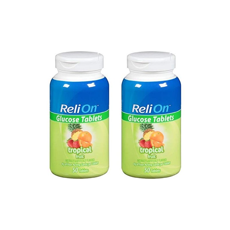 Relion Glucose Tablets - Tropical Flavor - 50 Counts (2 Pack)