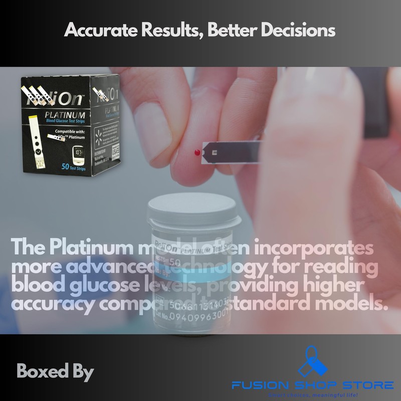 - Large Dosing Area - The ReliOn Platinum test strips offer a large dosing area; place a little drop of blood anywhere along the test strip edge. You will receive ReliOn Platinum Blood Glucose Test Strips, 50 Count (1) Set with Fusion Shop Store Week Case (1)