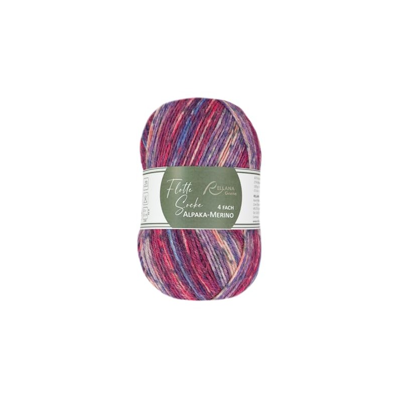 Rellana Alpaca Sock Wool, 4 Ply 100g, 420 m Length, 15% Alpaca, Needle Size 2-3 mm (3070 Purple/Blue/Red)