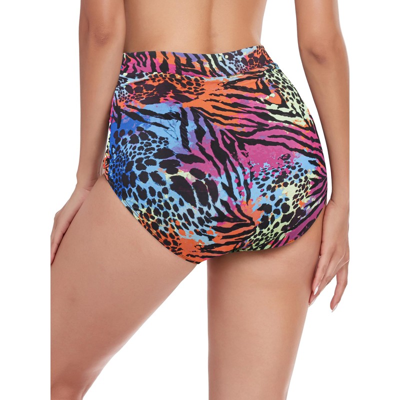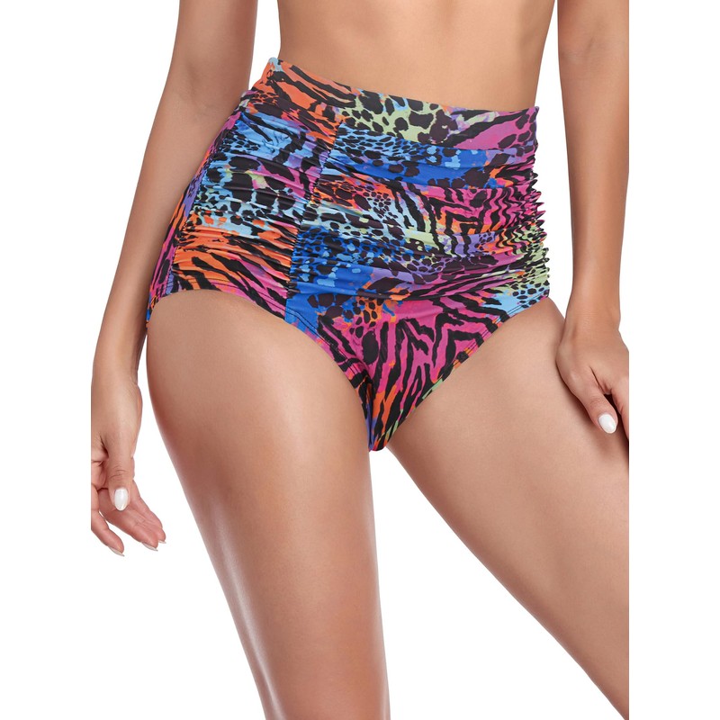 RELLECIGA Women's Animal Print High Waisted Ruched Bikini Bottom Size Medium