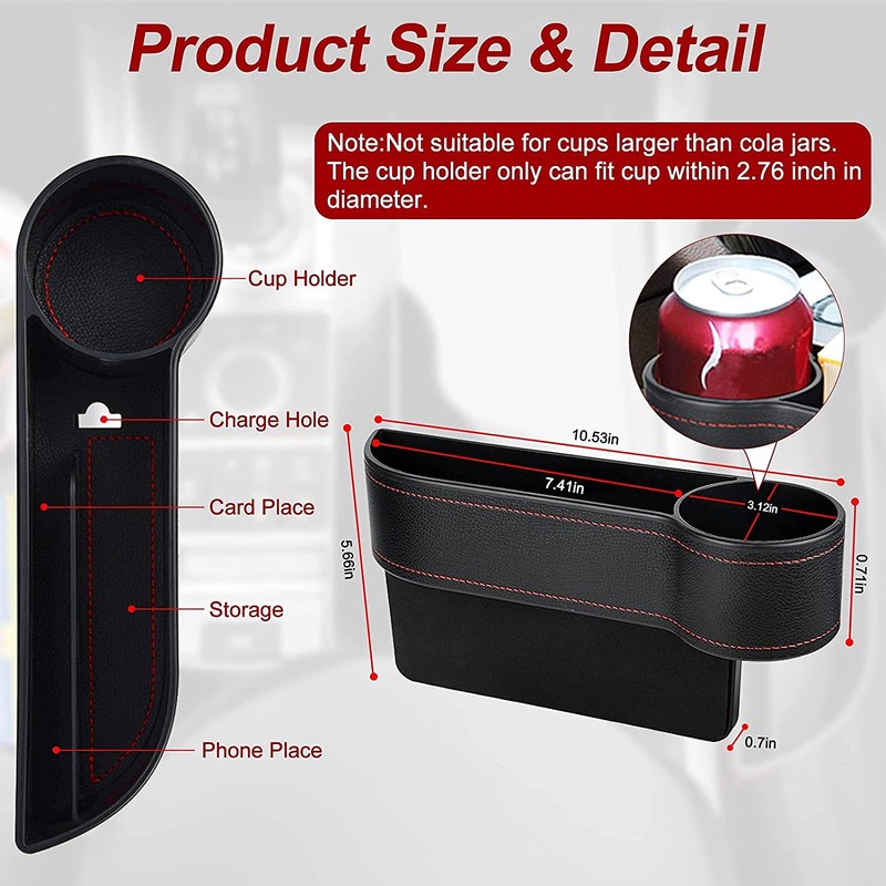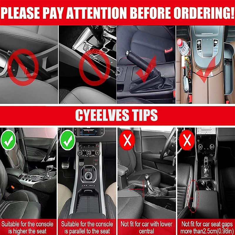 - Fácil de instalar Simplemente inserte la caja de almacenamiento del automóvil entre la consola central y el asiento. La artesanía exquisita y el dise?o exquisito garantizan la durabilidad de la caja de almacenamiento.
