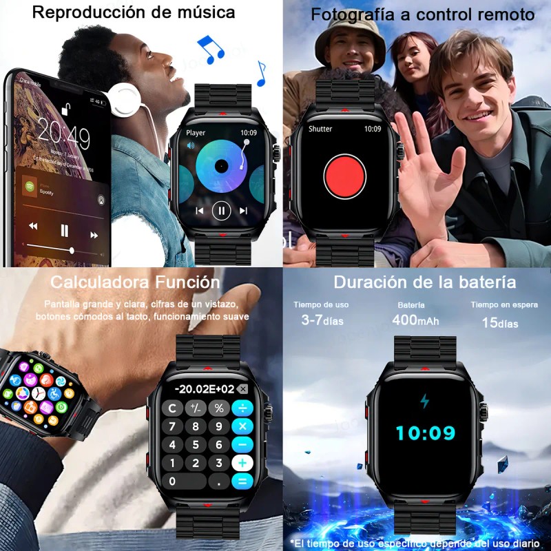 Reloj inteligente Hombre Smartwatch 2.01 HD Bluetooth llamada Deportivo Color negro Impermeable 400mah Reloj inteligente Jooeniok