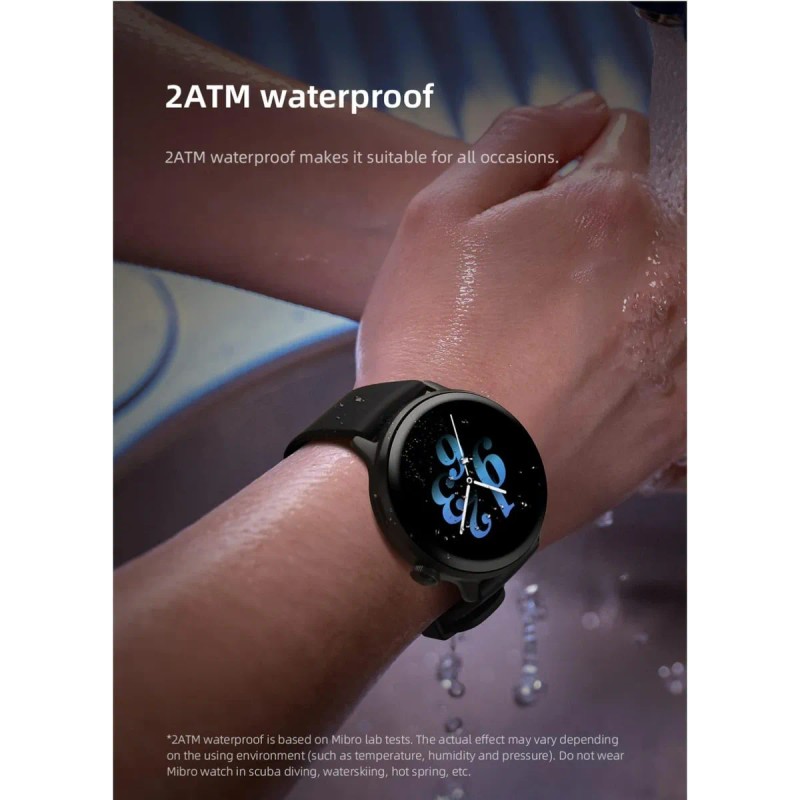 O smartwatch Mibro tem muitos recursos para facilitar sua vida, incluindo controle/reprodução de música, agitar para tirar fotos, encontrar relógio, alarme, lembrete sedentário, calculadora, cronômetro, calendário, modo de economia de energia, não perturbe, clima, cronômetro, configuração de senha e bloqueio de tela. Ele é resistente à água até 2ATM, então você pode usar o relógio enquanto lava as mãos ou nada. (Não use em mergulho, esqui aquático, fontes termais, saunas, etc.)
