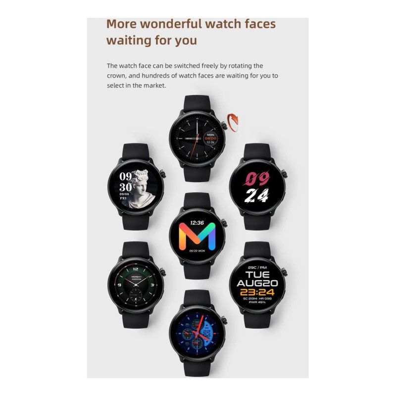 O relógio Mibro possui uma tela sensível ao toque Amoled HD de 1,3 polegadas com 391ppi e maior espaço de cor. Suporta exibição de relógio fora da tela AOD e vários formatos de mostradores de relógio fora da tela. O corpo de metal de alta qualidade, criado por meio de dezenas de processos, combina perfeitamente com o vidro transparente ligeiramente curvado. O design de pulseira dupla de couro e silicone é adequado para uso em vários cenários.