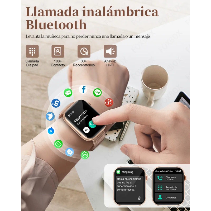 Reloj Inteligente Mujer Smart Watch P45 Bluetooth Call 1.85 FoxBox P45 IOS/Android Silicona/Acero inoxidable