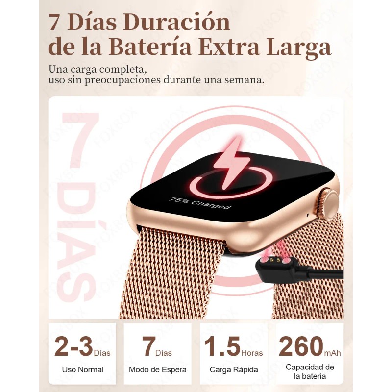 El Reloj Inteligente FoxBox P45 ofrece una experiencia completa de smartwatch con un diseño refinado y características avanzadas. Equipado con una pantalla táctil de 1.85", permite una navegación fluida y clara. La correa intercambiable de silicona y acero inoxidable garantiza comodidad y versatilidad para adaptarse a tu estilo diario.
