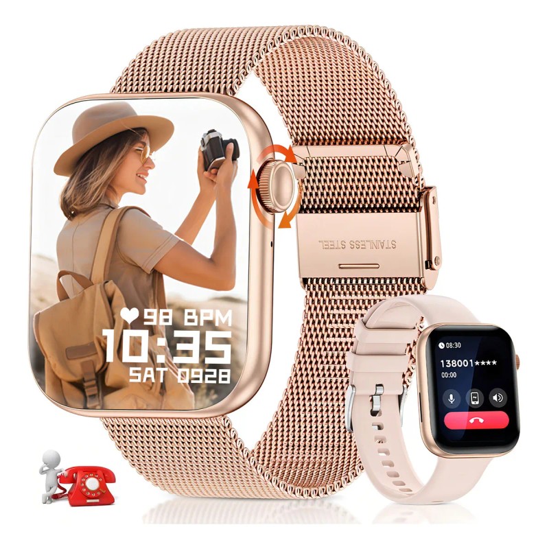 Correa intercambiable: Incluye correas de silicona y acero inoxidable para adaptarse a diferentes estilos.