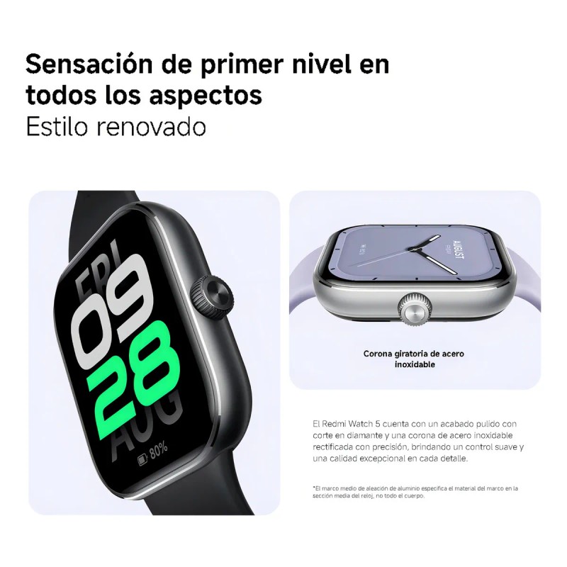 El XIAOMI Watch 5 es el compañero perfecto para quienes buscan innovación y rendimiento en un smartwatch. Con su pantalla AMOLED ultragrande de 2,07” y una resolución de 432 × 514 píxeles, ofrece una experiencia visual nítida y fluida gracias a su frecuencia de actualización de 60 Hz.