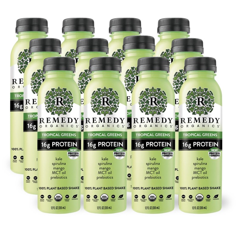 Remedy Organics Tropical Greens 12-Pack | Plant Based Protein Shakes, Ready to Drink | USDA Organic, Gluten Free, Dairy Free, Soy Free