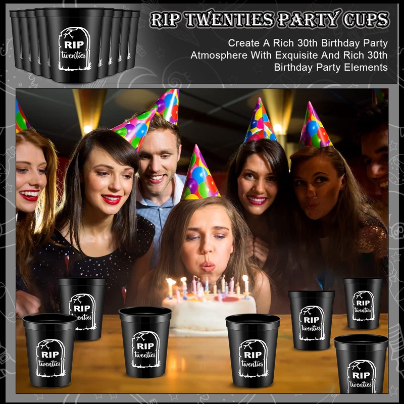 - Package Included: contains 24 pieces of 16 oz black plastic birthday party cups, double sided printing with decorative "RIP" lettering on each cup, bring 30th birthday or anniversary decorations to all areas of your event; Enough to complete your birthday party decorations