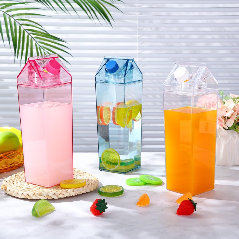 - Abundant Quantity to Share: the package contains 3 pieces of clear, blue and pink milk carton water bottles in transparent style, well matched with different colors of drinks, enough to meet your daily requirements for usage and replacement