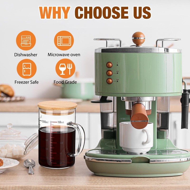 - Thoughtful Design: our glass measuring cup lid is made of natural bamboo, which is healthy and elegant, compared to metal or plastic coffee measuring cups, it is more suitable for matching hand drinking, milk, baking, cooking