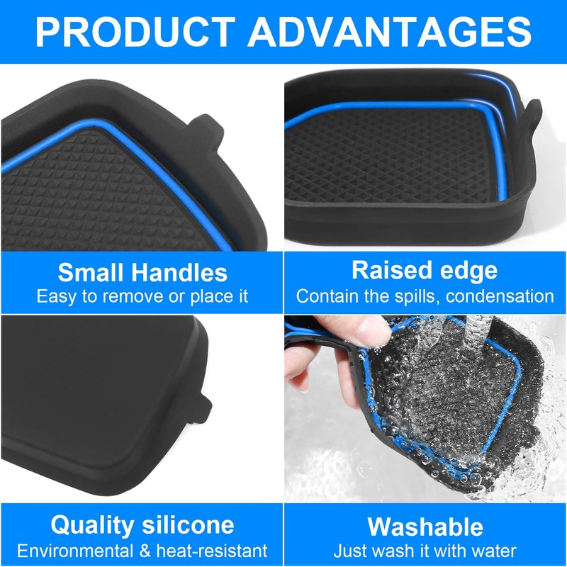 - 【Pull-tab & Raised edge】1.Easy to install and remove it with pull-tab handles. 2.3D cup holder liner has an elevated edge so that spills are contained