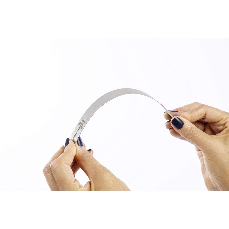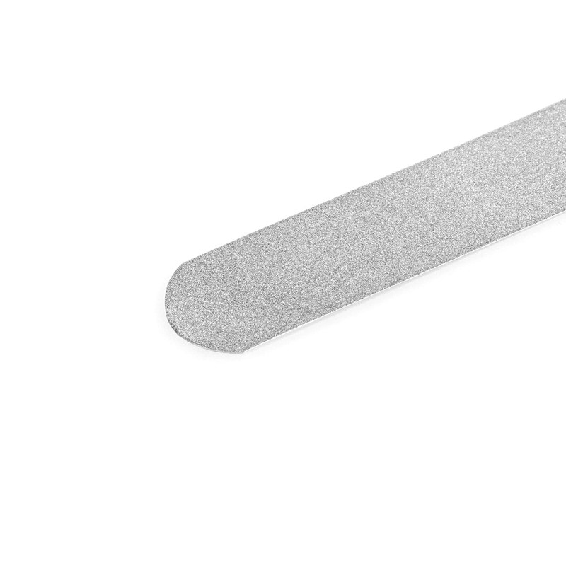 • Professional file: innovative, stainless steel coated with diamond dust in different grains. 0.5 mm thin, flexible and flexible. Hard to reach areas can be worked on. [180x18x0.5mm]