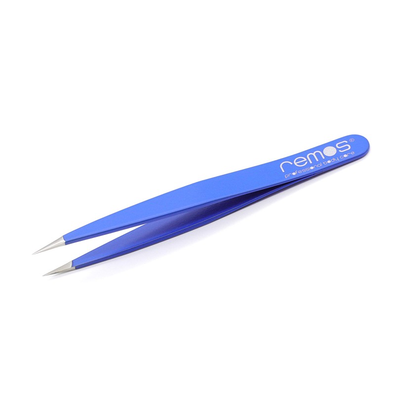 Remos satin stainless steel splinter tweezers with sharp precision gripping surfaces for effortless splinter removal. Length: 9.5 cm.