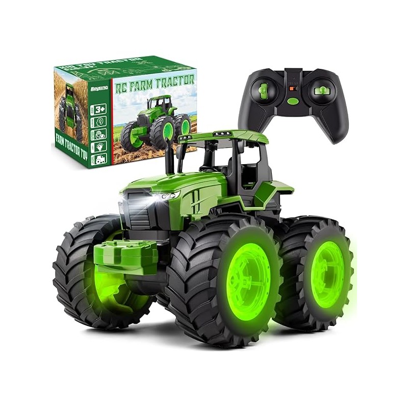 Remote Control Tractor Toys for Kids 3-5, Light Up Monster Trucks Toy for Boy...
