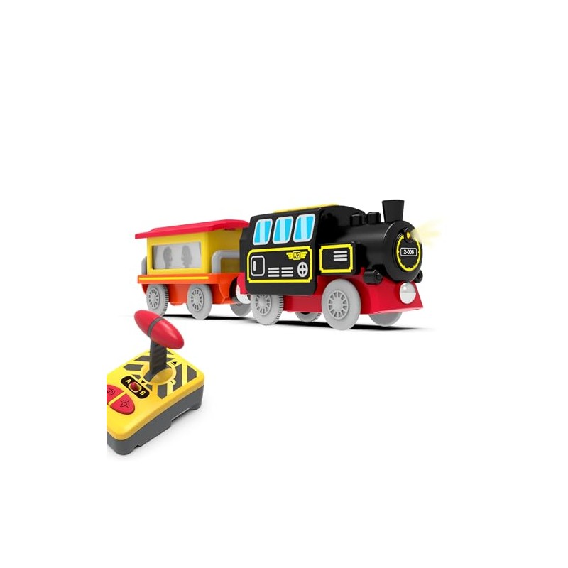 - 🔋Electric Train Set:Includes a battery locomotive, cargo train and remote control.The unique controller and locomotive require channel pairing.Fit Wooden Train Set System & Magnetic Connection ( track not included )