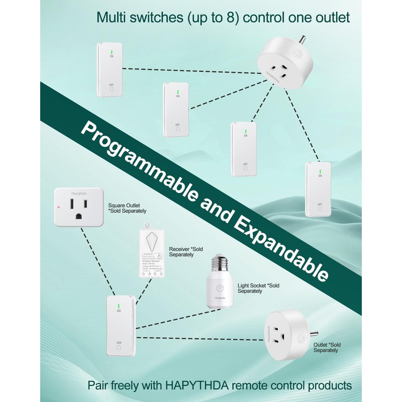 Remote Light Switch for Remote Control Outlet, Wireless Light Switch for Light Socket, Programmable Expansion for HAPYTHDA Products
