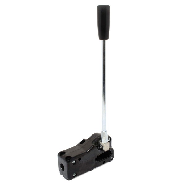 This heavy duty handle is used to control double acting hydraulic loader control valves using remote cables. The handle has anti-reverse lock.