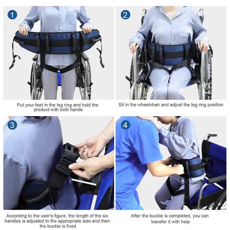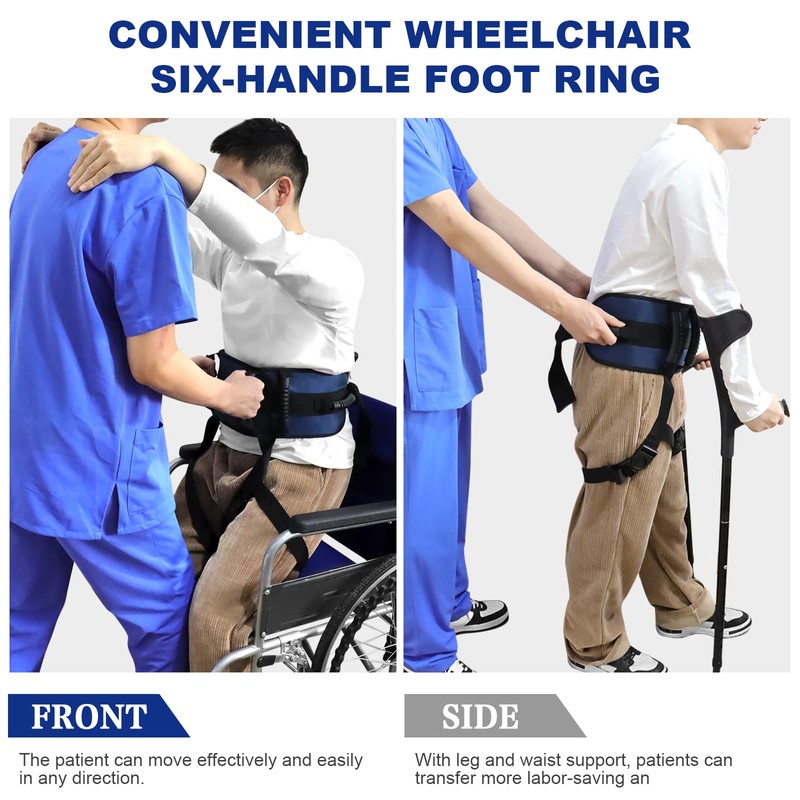 - Comfortable use: 4 horizontal handles and 2 vertical handles can help patients move from different angles, easy to put on and take off with the buckle, and the length of the strap can be adjusted, which is suitable for patients of different sizes.