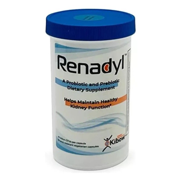 Renadyl® 60 cápsulas 💊🛡️ | Suplemento probiótico especializado en apoyar la función renal en personas con enfermedad renal crónica (ERC) o deterioro de la función renal. Contiene cepas únicas de Kibow Biotics® para mejorar el bienestar general. 🌿🩺