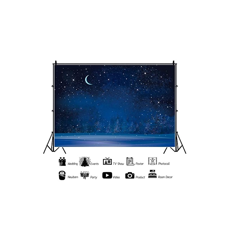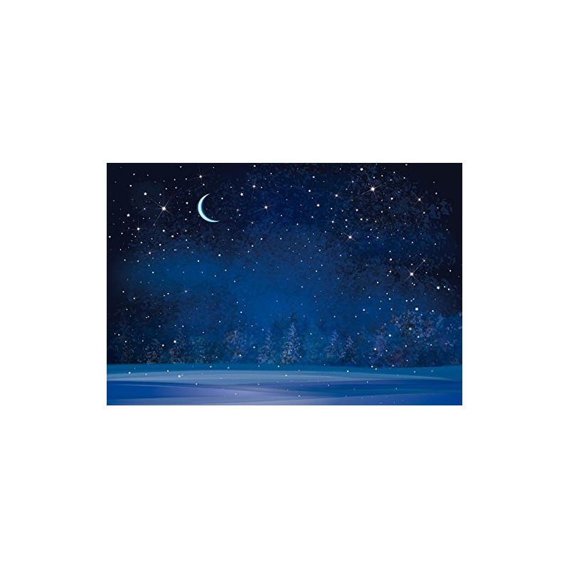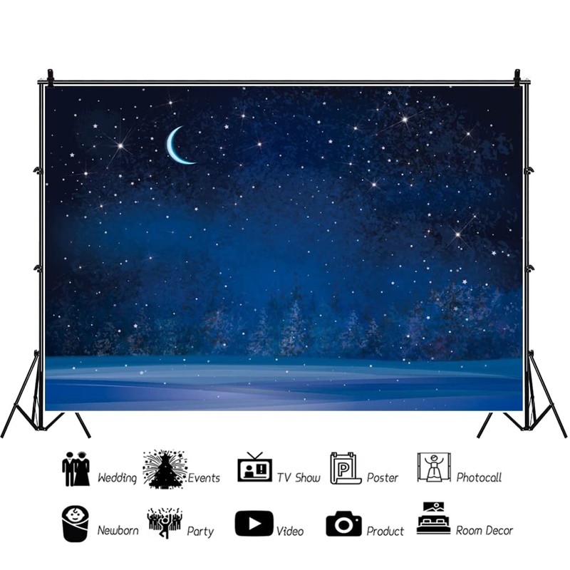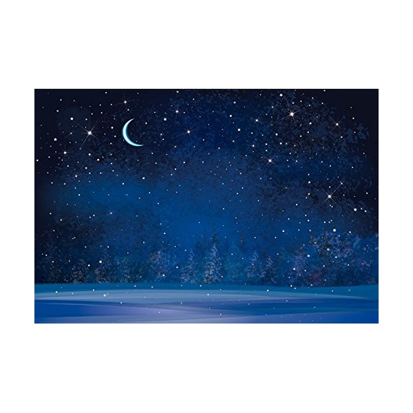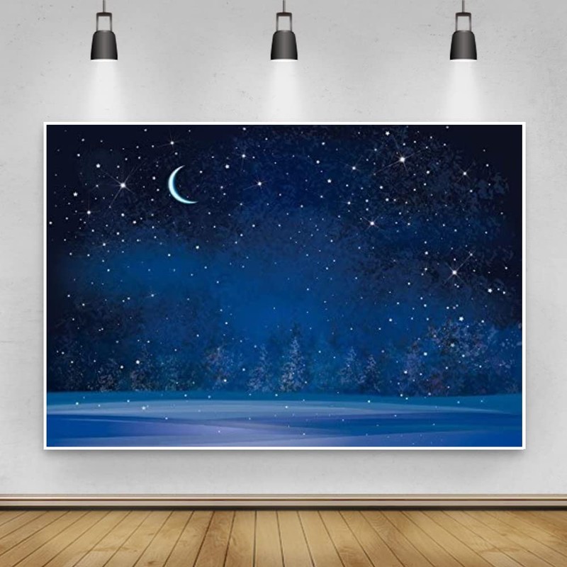Renaiss 10x8ft Starry Night Backdrop Sky Moon Snowfall Photography Backdrops Blurry Forest Night Fir Trees Pine Background Merry Christmas Happy New Year Party Decoration Studio Props