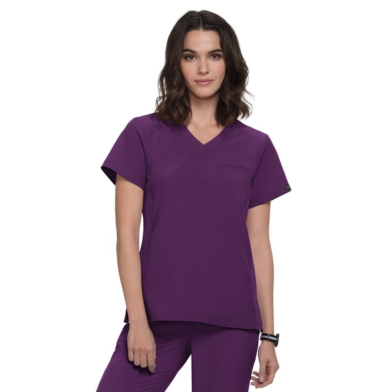 - V-neck|Chest pocket|Ribbed panels at sides and back|Quick-drying moisture-wicking fabric|Side slits|Lengths Size S: 26 1/2"|55% polyester 38% recycled polyester 7% spandex 4-way stretch