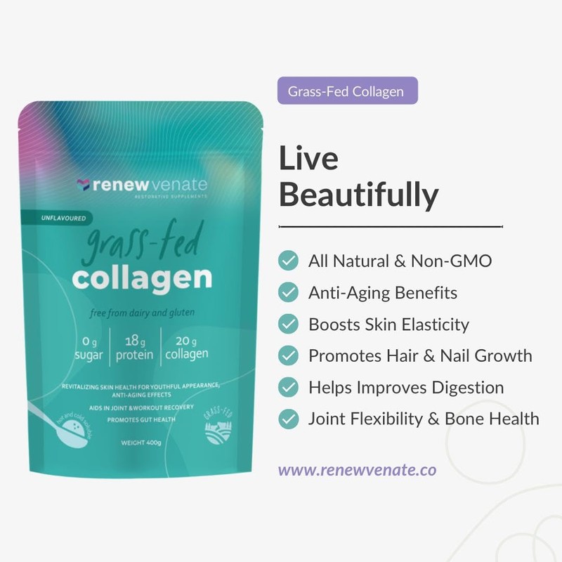 RenewVenate Grassfed Collagen Powder – Premium Hydrolyzed Protein for Hair, Skin, Nails & Joint Support – Non-GMO, Gluten-Free, Keto-Friendly 400g