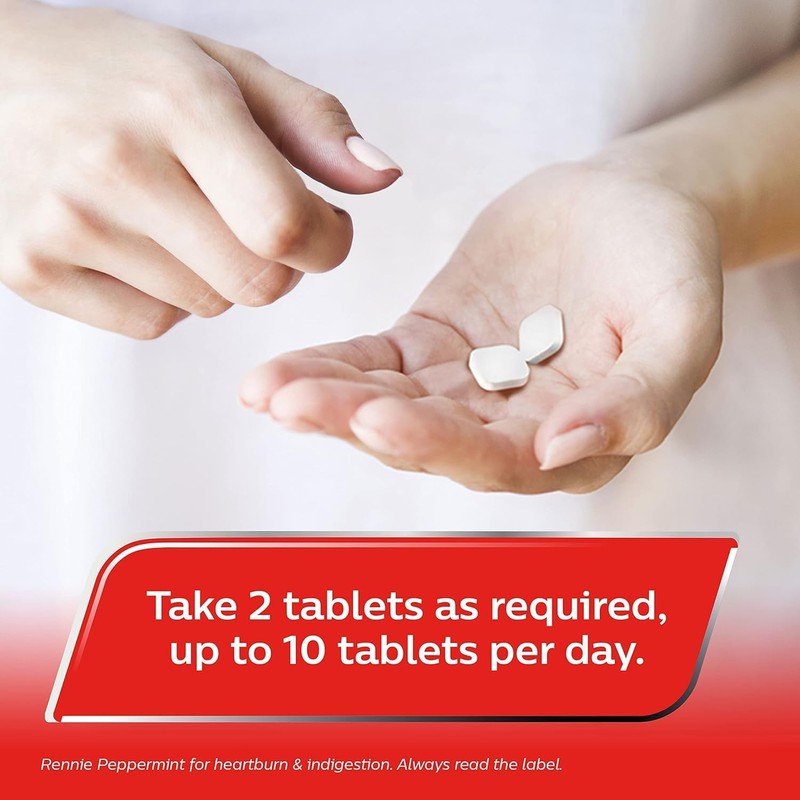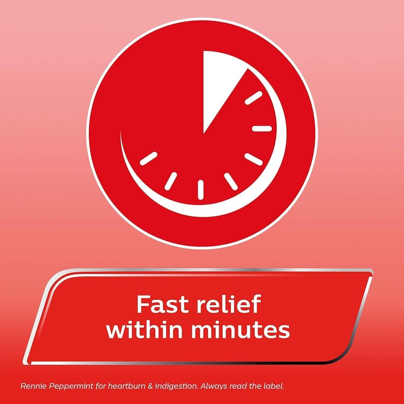 - Containing antacid to neutralise excess stomach acid, Rennie Peppermint tablets work fast to relieve the symptoms of heartburn and indigestion