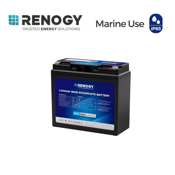 At only half the weight of a lead-acid counterpart, the Renogy 12V 20Ah TM Series LiFePO4 Battery is built strong to tackle splashes, dust, and corrosion so you can stay on the water with peace of mind.
