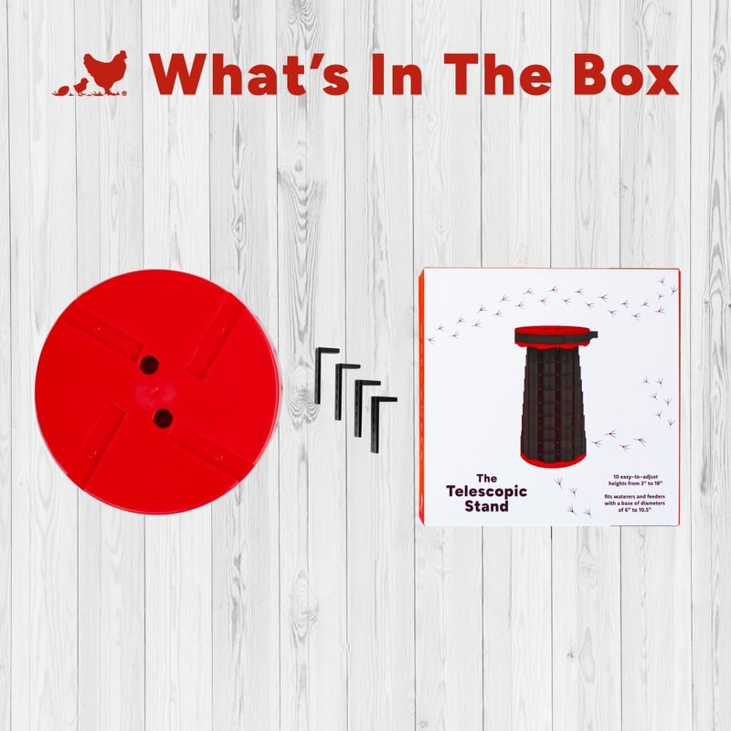 - RentACoop Has a Solution! | Elevate your flock's feeding and watering experience with our NEW Telescopic Stand! Pair with a 2 or 5 Gallon Waterer or 10 or 20 Lb Feeder to provide fresh, clean water and food for your chickens, turkeys, and other animals!