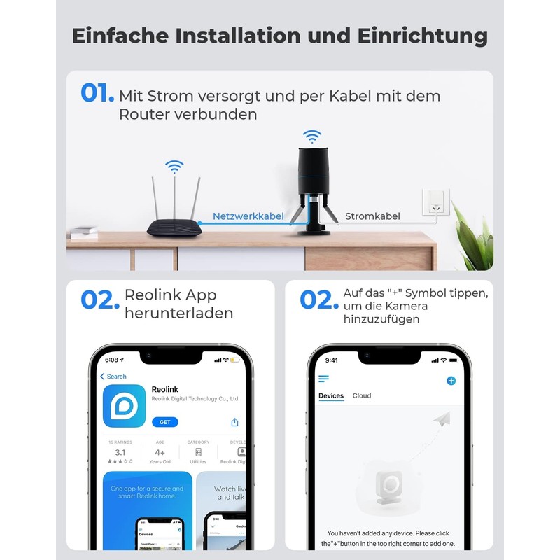 - 5/2,4 GHz Dualband-WLAN: Die Kamera untersttzt Dualband-WLAN fr optimale Netzwerkleistung. 2,4 GHz deckt einen gr??eren Bereich ab, w?hrend 5 GHz fr weniger St?rungen sorgt. W?hlen Sie das geeignete Band je nach Umgebung.