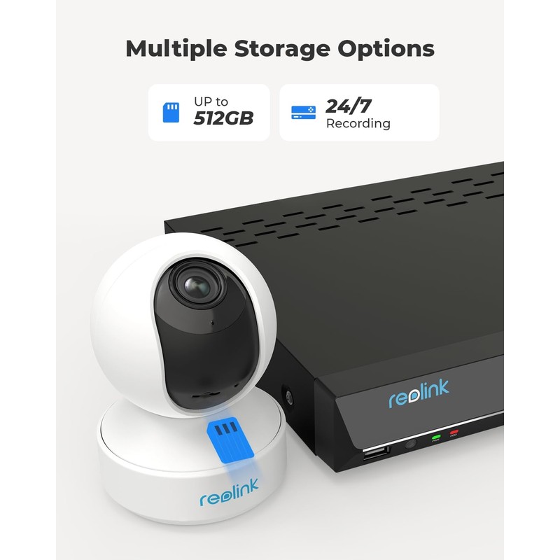 • EASY SETUP & FLEXIBLE STORAGE: Power on the E1 Zoom and set it up in minutes with an Ethernet cable or WiFi connection. It supports up to 512GB microSD card(not included), high capacity NVR and FTP server. Store your data locally, no monthly fee required.