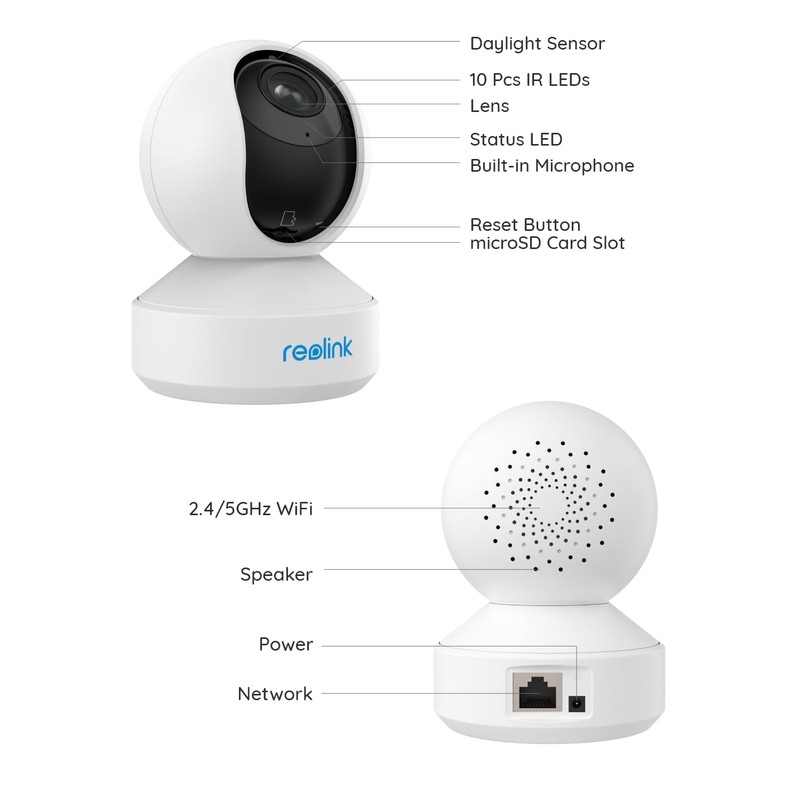 REOLINK REOLINK E1 Zoom Indoor Security Camera, 2.4/5GHz Dual Band WiFi, 5MP ...
