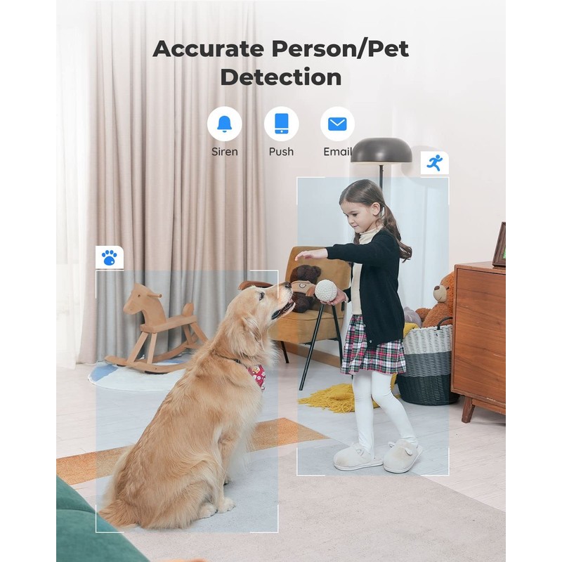 • AUTOMATIC PERSON/PET TRACKING: This auto-tracking PTZ camera can distinguish humans and pets from other objects and follow them to let you see their entire movements. Perfect for baby or pet monitoring.